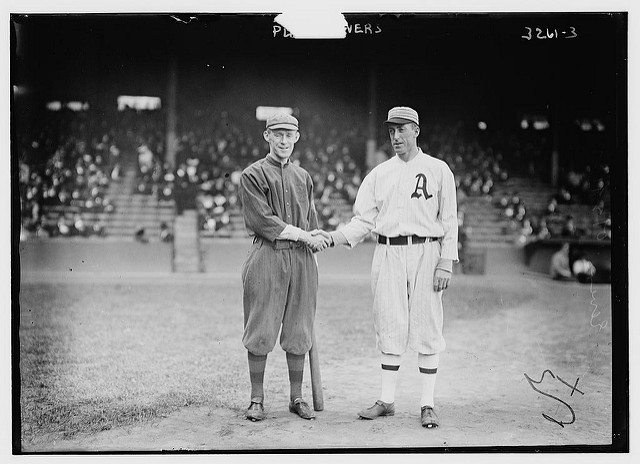 We’re all familiar with the classic poem Baseball’s Sad Lexicon by Franklin Pierce Adams that immortalized the Cubs double play combination of “Tinkers to Evers to Chance.” But not everyone is aware that a feud started between Tinker and Evers in 1905 and the two didn’t speak to each other for 33 years! On September 14, 1905, Tinker and Evers engaged in a fistfight on the field because, the story goes, “Evers had taken a cab to the stadium and left his teammates behind in the hotel lobby.”