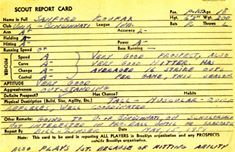 Koufax attended the University of Cincinnati and was a walk-on on the freshman basketball team.  In spring 1954, he made the college baseball varsity team, going went 3–1 with 51 strikeouts and 30 walks, in 31 innings. Bill Zinser, a scout for the Brooklyn Dodgers, sent the Dodgers front office a glowing report that apparently was filed and forgotten [see photos of Sandy’s scouting report included in the photo gallery].