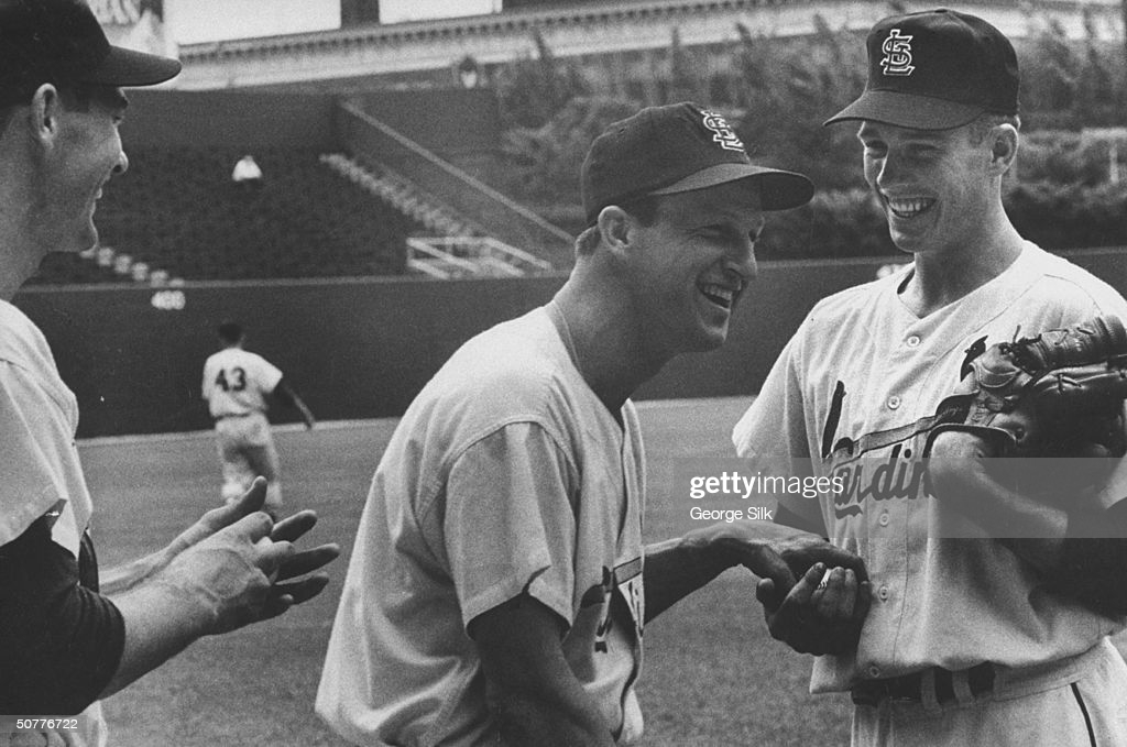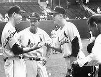 Bill Schaefer returns this week with the interesting story of the short-lived career of Von McDaniel, shown above with teammates Del Ennis and Stan Musial. Those of us who’ve been around for a while will remember the fine relief pitcher Lindy McDaniel. But how many remember that he had a younger brother, Von, who was a highly-touted bonus baby sensation? I’m sure our readers who are long-time Cardinal fans will recall with sadness his flash-in-the-pan career and will be thinking about “what might have been.” -GL