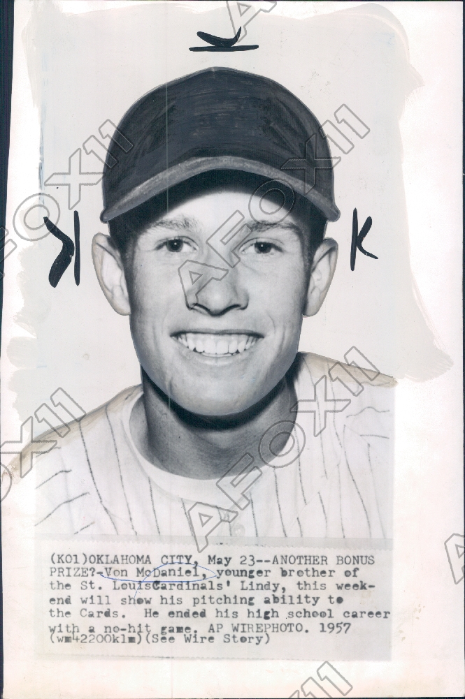 At age 18, Von McDaniel was considered a better pitching prospect than his older brother. A lean 180 pounds well proportioned over a 6’ 2” frame gave Von the look of an athlete. An all-state basketball star, he rejected a scholarship to Kansas University because his dream was to pitch for the St. Louis Cardinals—with his brother Lindy.