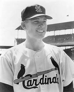 All 16 Major League teams pursued him and many offered more than the $50,000 bonus given to Lindy. But his dad, Newell, was adamant, “Von will accept exactly what Lindy got, not a penny more or a penny less!” On May 23, 1957, just four days after graduating as class valedictorian, Von McDaniel signed a bonus contract for 50K, requiring him to start his career in the majors with the Cardinals. Three weeks later on June 13, barely 18, Von blanked the Phillies for four innings in a mop-up role, allowing only a single hit.