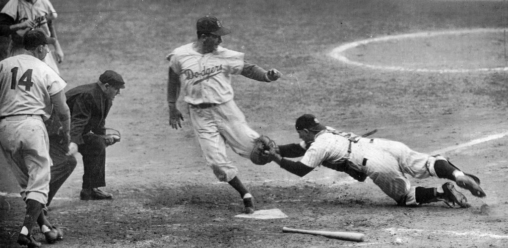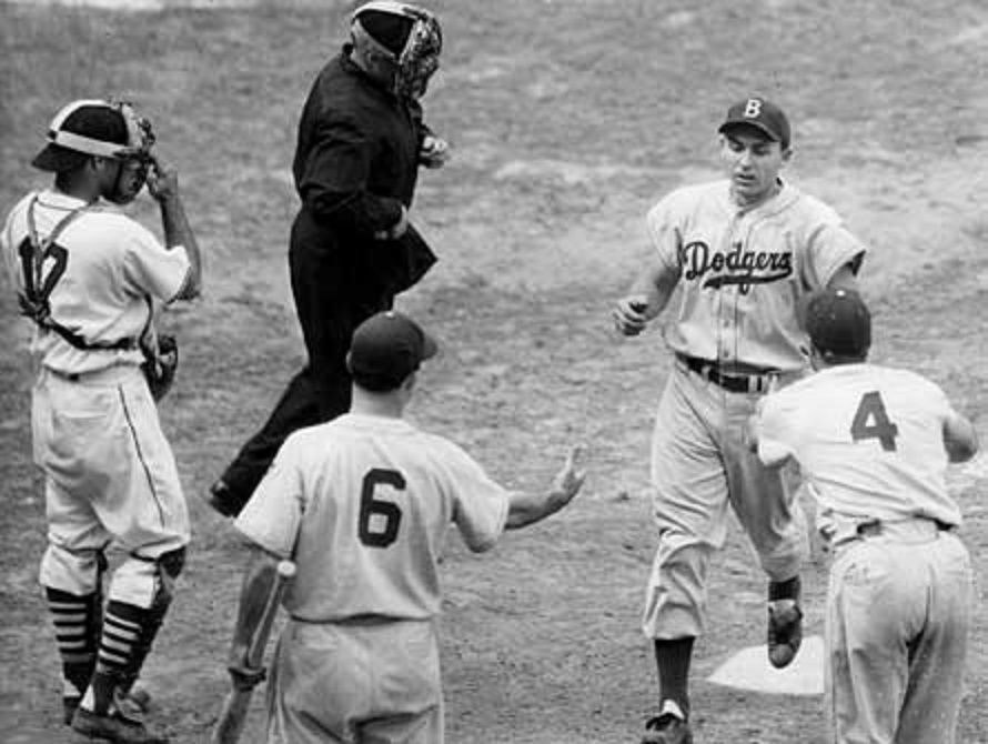 Thanks to our crack baseball researcher, Don Stokes, for finding two photos of the incident which are posted in the comments section below. Click on the link to see a nice photo tribute to Carl “Skoonj” Furillo and Leo Durocher: http://wp.me/p7a04E-1qt