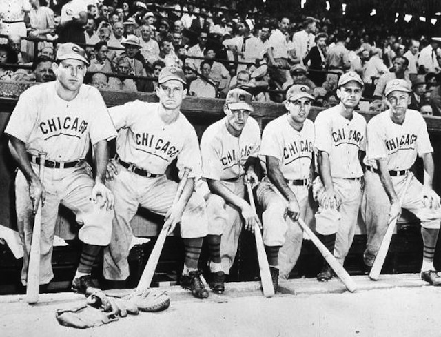 (In the featured photo, we see Swish Nicholson with teammate Jimmie Foxx, who was a Cub towards the end of his career in the 1940s).