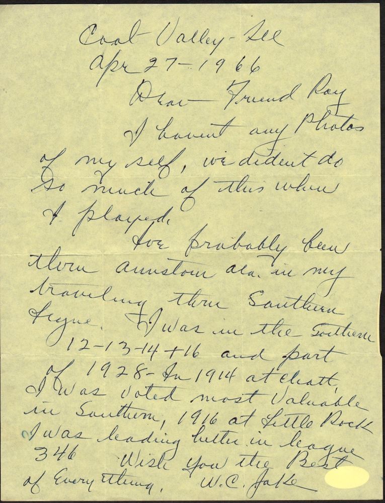 So how did he get his great nickname? While playing for Mobile Sea Gulls in the Southern Association on Opening Day of the 191 2 season, the band began playing the popular song, “Oh, You Beautiful Doll”, as Jacobson came to the plate. As Baby Doll later recalled: “Well, I led off with a home run on the first pitch, and a lady sitting behind the plate jumped up and shouted, ‘You must be that beautiful doll they were talking about.’ The name stuck with me and that was it.” The band continued that practice from that time on whenever he came to the plate and for the rest of his life, William Chester Jacobson was known as “Baby Doll” Jacobson!