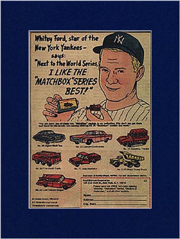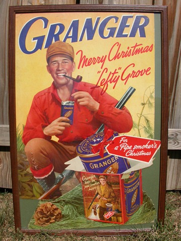 Many brands of cigarettes (Luckies, Chesterfields, Camels), Champ Cigarette lighters, pipe tobacco (Granger, Velvet), tobacco chews (Redman, Tuxedo), beer (Budweiser, Falstaff, Rheingold, Old Style), Carling’s ale, hard liquor and booze, cereals (Shredded Wheat, Cream of Wheat, Wheaties, Puffed Rice, Kelloggs’s Corn Flakes), candy, metal box cars, assorted toys, Whirly Bird Play Catch game, shoes (PF Flyers, Converse), Cracker Jack, baseball equipment (Louisville sluggers and Spaulding bats, mitts), Alaga breakfast syrup, gum (Beach-nut, Wrigley’s Doublemint), automobiles, Iron Man batteries, Yoo-Hoo chocolate drinks, soda (Coke, Red Rock, and Moxie), Carnation Milk, toothpaste (Ipana, Colgate), Alemite lubricants (not what you’re thinking!), garter belts, pizza, bread, baseball board games, razor blades (Gem and Gillette).