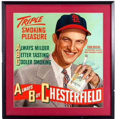 Here’s a neat one of Johnny Mize getting a piece of the action with an endorsement for Red Man tobacco, America’s Best Chew. Not only that, you can get a free baseball cap “For you or your boy!”I guess you had to send in for it.