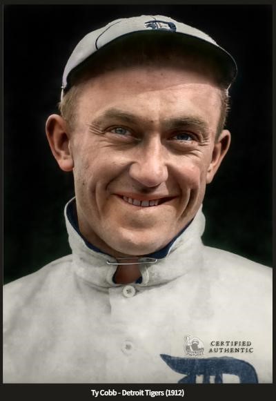 Top row, L-R: Bobby Wallace, Frank “Homerun” Baker, Smoky Joe Wood, Walter Johnson, Hal Chase, Clyde Milan, Russ Ford, Eddie Collins. Front row, L-R: Germany Schaefer, Tris Speaker, Sam Crawford, Jimmy McAleer, Ty Cobb, Gabby Street, Paddy Livingston.