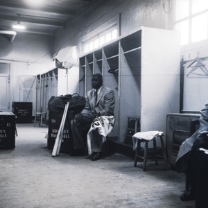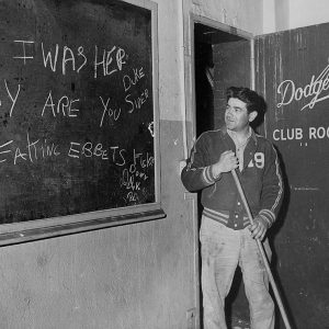 Jackie Robinson in Ebbets clubhouse