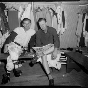 Sid Gordon and Bob Elliott in clubhouse