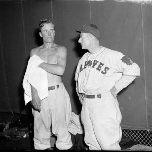 Bill McKechnie with Wally Berger in Braves clubhouse