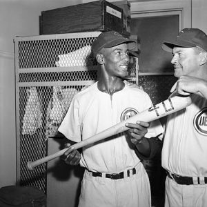 Ernie Banks and manager Stan Hack