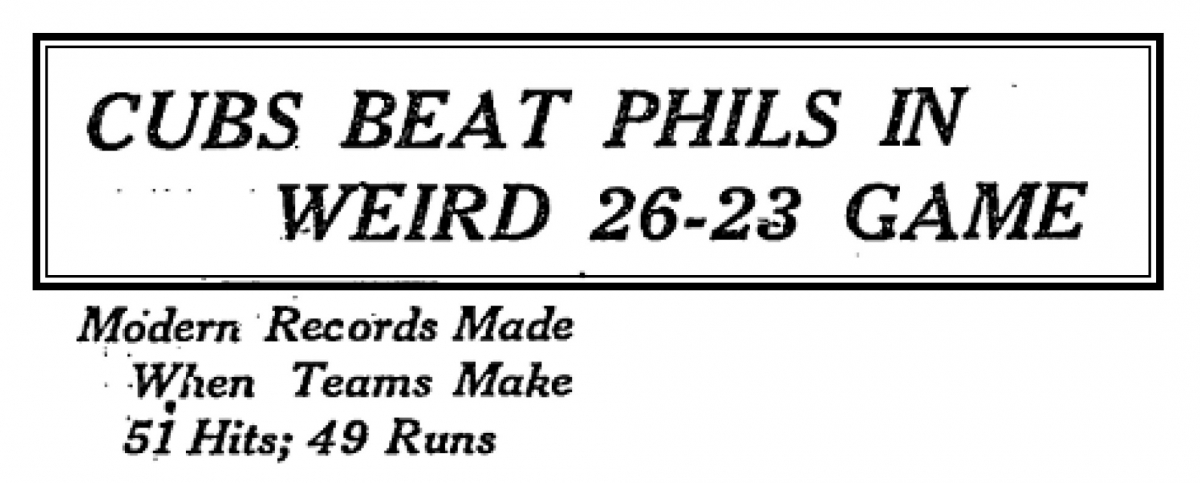 My post the other day about the wacky game last Friday in which the Blue Jays beat the Red Sox 28-5, reminded me of the historic game between the Cubs and Phillies played on August 25, 1922.