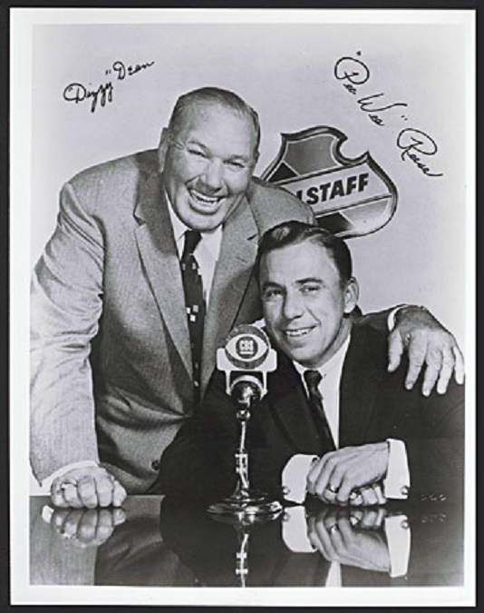 After his playing career, he became a popular television sports commentator, known for his home-spun humor and mangling of the English language which endeared him to his fans. An English teacher once wrote to him, complaining that he shouldn’t use the word “ain’t” on the air, as it was a bad example to children. On the air, Dean said, “A lot of folks who ain’t sayin’ ‘ain’t,’ ain’t eatin’. So, Teach, you learn ’em English, and I’ll learn ’em baseball.”