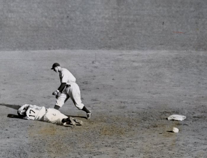 Dean was known for antics which inspired his nickname. In Game Four of the 1934 World Series, Dean was sent to first base as a pinch runner. The next batter hit a potential double play groundball. Intent on breaking up the double play, Dean threw himself in front of the throw to first. The ball struck him on the head, and Dean was knocked unconscious. The famous headline the next day said, “X-ray of Dean’s head reveals nothing.” Although the Tigers went on to win the game 10-4, Dean recovered in time to pitch in Game Five which he lost. After the Cardinals won Game Six, Dean came back and pitched a complete game shutout in Game Seven to win the game and the Series for the Cardinals.