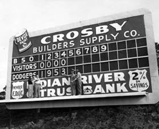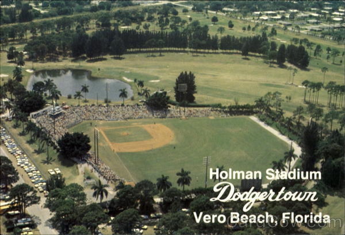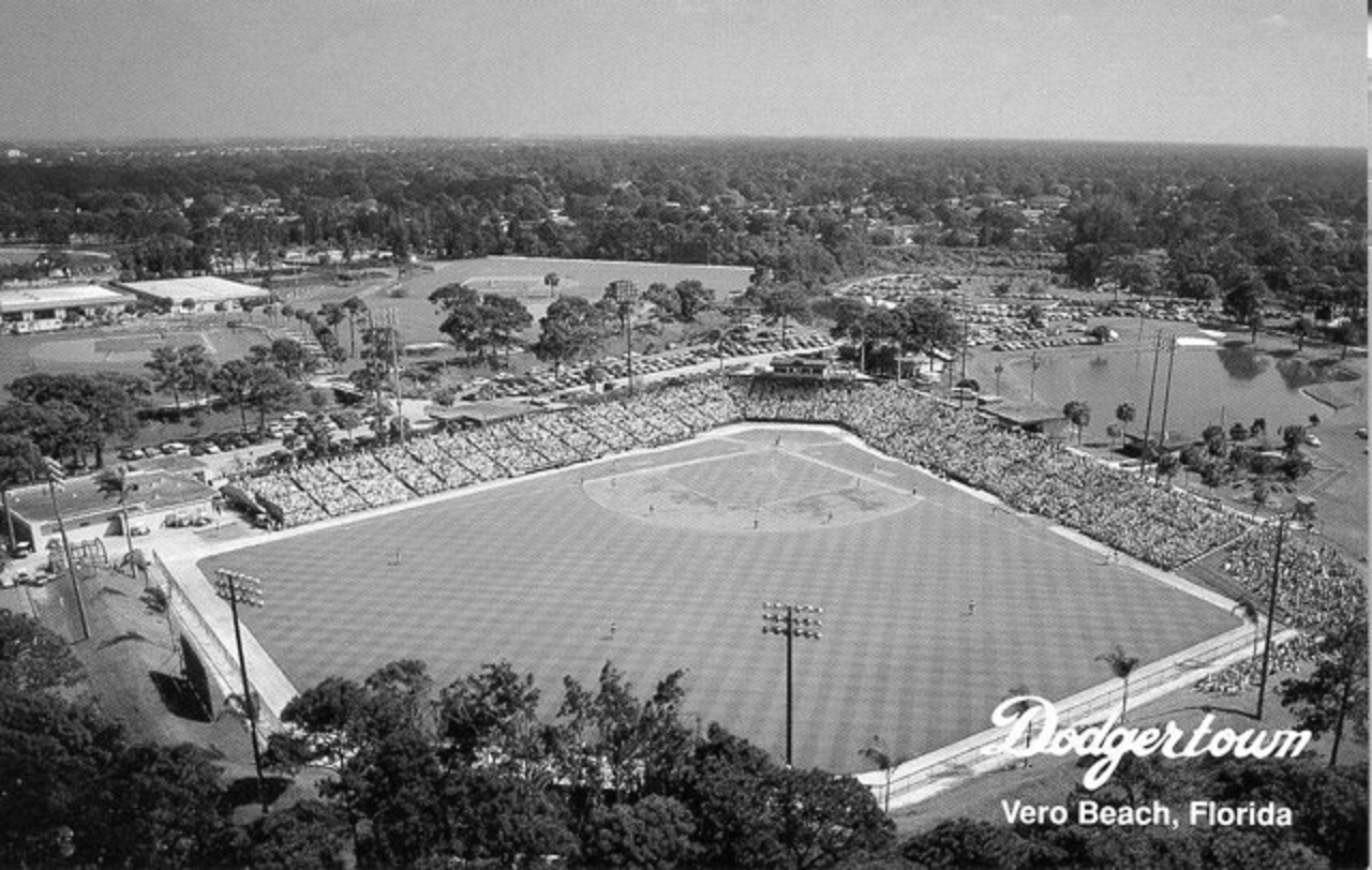 In 1948 the Brooklyn Dodgers signed a twenty-one-year lease with the City of Vero Beach, Florida to use an abandoned Naval base as their spring training facility. The site remained the Grapefruit League home of the Dodgers for 61 years, through 2008. Over the years the complex became known as “Dodgertown,” with games played at the 6,000-seat Holman Stadium.