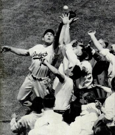 He had a bad series in 1952 (0-21), but he made up for it in subsequent years. In 1953 he hit .364 and led all Dodger hitters; in 1955 he hit .292 and drove in both runs in the Dodgers’ decisive 2-0 victory in the seventh game of the Series; in 1956 he hit .304 and tied with Duke Snider for top Dodger hitting honors; in 1959 he hit .391 and again led all Dodger hitters.