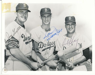 Jim was originally signed by the Brooklyn Dodgers back in 1952. In spite of some outstanding minor league seasons, including leading two different leagues in home runs, he languished in the Dodgers’ system for eight years due to the fact that a pretty good ballplayer was solidly entrenched at first base. You may have heard of him. His name was Gil Hodges. Jim finally got the call to the Bigs and made his major league debut on September 10, 1957. Two weeks later, he was the starting first baseman on September 24, the Dodgers’ last game at Ebbets Field.