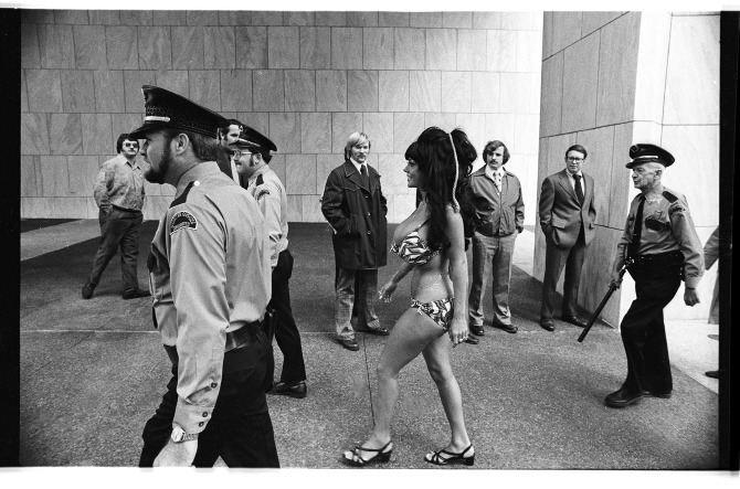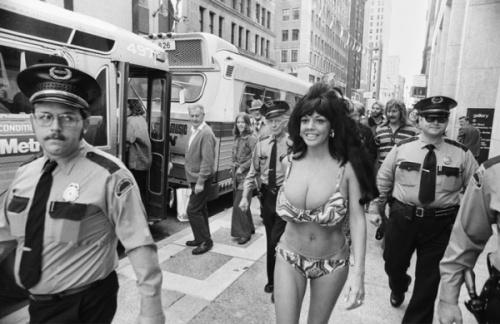 If Morganna was looking for publicity to boost her career, the scheme worked like a charm. It paid immediate dividends. Following her “surprise assault’ on Boyer she became something of a national sensation. She was arrested a few days later for jumping in a fountain in a bikini during the dedication of the city’s new Equitable Building. Morganna later claimed the publicity from the stunts netted her a cool 100 grand from her night club act and other personal appearances. Spreads in Playboy and other magazines soon followed,