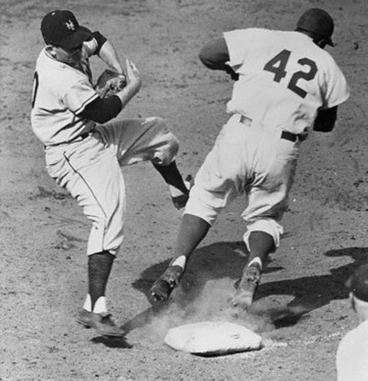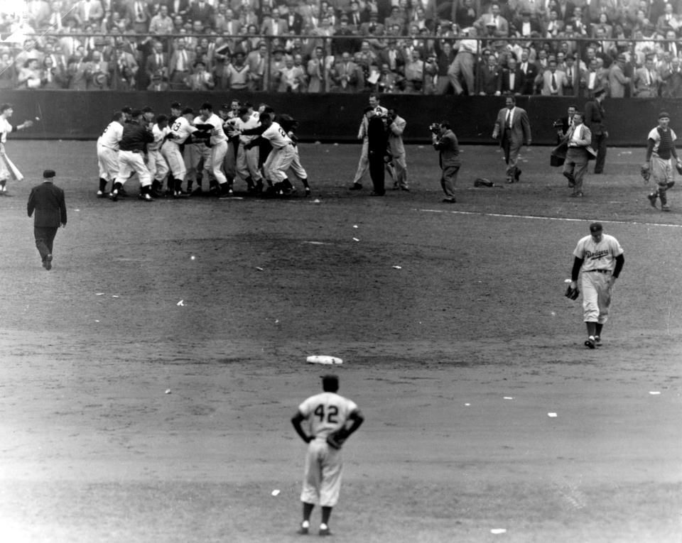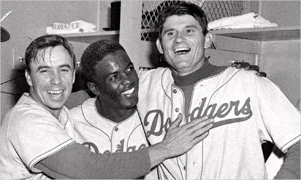 That’s Larry Doby and Jackie Robinson. But who’s sitting on the dugout steps? Hint: it’s from 1953.