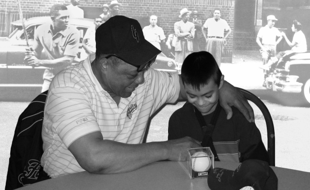 On top of all that, he combined an infectious glee with a boyish enthusiasm that lifted the spirits of all around him. Cap-flying, wall crashing, legs churning, Mays ate up a baseball field whether covering ground in the outfield or dirt on the base paths. And the fans couldn’t get enough of him, making Mays one of the most beloved figures in the game. Willie was a popular figure in Harlem during his days in New York. Magazine photographers were fond of chronicling his participation in local stickball games with kids. It was said that in the urban game of hitting a rubber ball with an adapted broomstick handle, Mays could hit a shot that measured “six sewers” (the distance of six consecutive New York City manhole covers, nearly 300 feet).