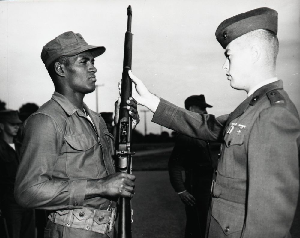 Whitey Ford learns to shoot a rifle during military training