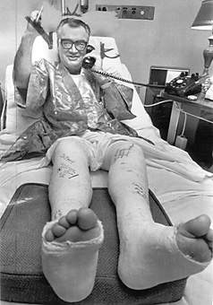 It was a rainy Sunday morning and Harry was lucky to survive. He was reportedly knocked 40 feet in the air and suffered two broken legs, a broken nose, and a dislocated shoulder. I wasn’t surprised to read that his hospital room became “party central.” He somehow recovered from all this to make it to the Cardinals’ Opening Day! Always the showman, Harry dramatically threw aside his two canes and walked to the broadcast booth under his own power after a pre-game tribute.