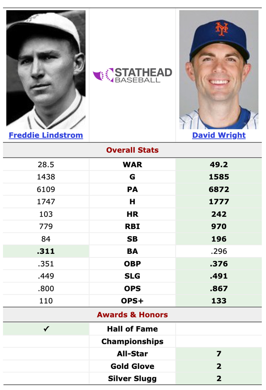 In thinking about players who were great players at third base, but are not Hall-of-Famers, my mind immediately jumps to one of my favorite all-time New York Mets, David Wright. Wright has been on the ballot for two years presently but stands little chance of being inducted. Most feel that his career, while great, was just too short. Then there’s Freddie Lindstrom. Comparing Lindstrom with David Wright did not work out well for Freddie.