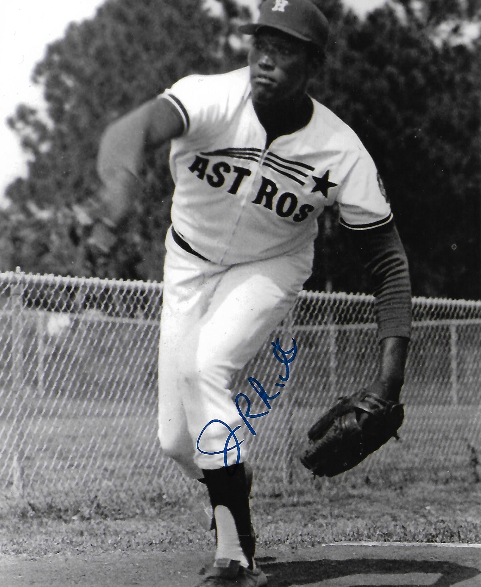 Known for his blazing fastball and intimidating appearance on the mound, J.R. played ten years in the major leagues (1971-1980), all with the Astros. Over his career, he posted a 107-71 record (.581), with a 3.15 ERA, 1493 strikeouts, 76 complete games, and 19 shutouts. He led the league in strikeouts twice (303 in 1978, 313 in 1979), and once in ERA (2.71 in 1979).