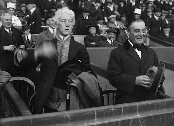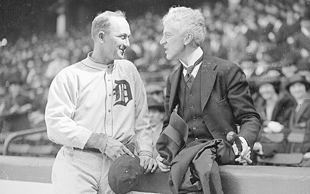 Although Tigers’ manager Ty Cobb seems pleased to meet new commissioner, Judge Kennesaw Mountain Landis in the featured photo below, taken on April 29, 1921, their relationship would quickly sour.