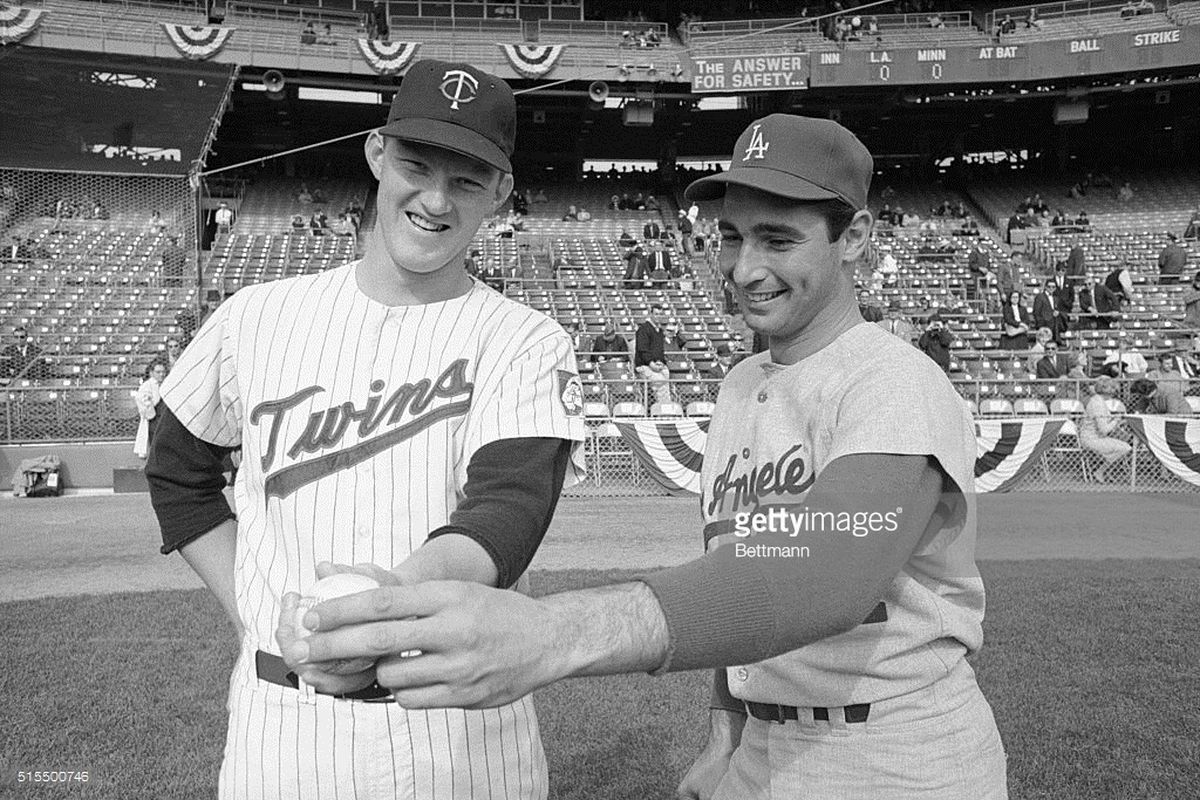 Koufax told announcer Vin Scully in a post-game interview that he and Drysdale had come to the ballpark that day not knowing which of them would start the game. Alston announced his decision at a pre-game meeting. The Twins went with Jim Kaat, also starting on two days’ rest. Both managers had relief pitchers warming up as their respective starters began the game.