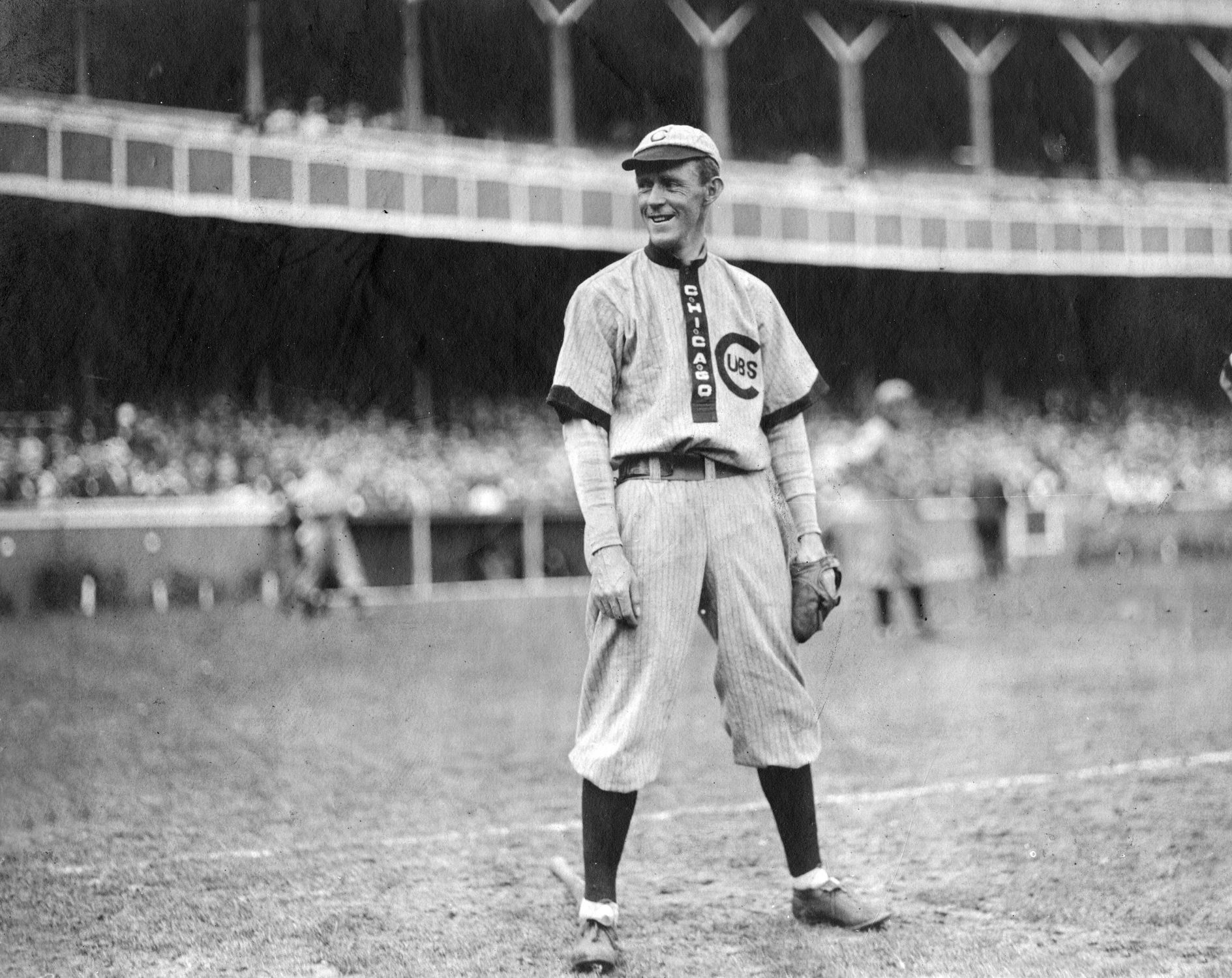 Mordecai’s most familiar nickname was Three Finger, although he actually had four and a half fingers on his pitching hand. Because of childhood curiosity, Mordecai lost most of his right index finger in a piece of farming equipment. Not long after, he fell while chasing a rabbit and broke his other fingers. The result was a bent middle finger, a paralyzed little finger, and a stump where the index finger used to be.