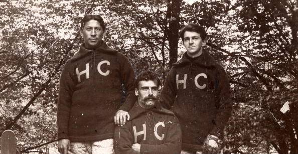 Louis Sockalexis, left, at Holy Cross, with Doc Powers and Walter Curley, 1895