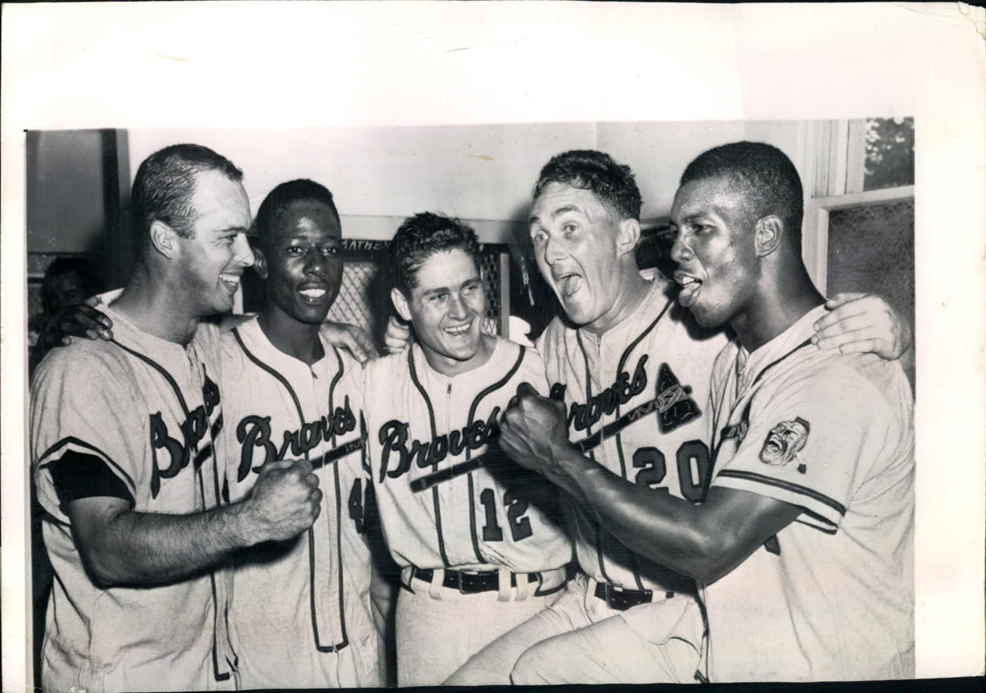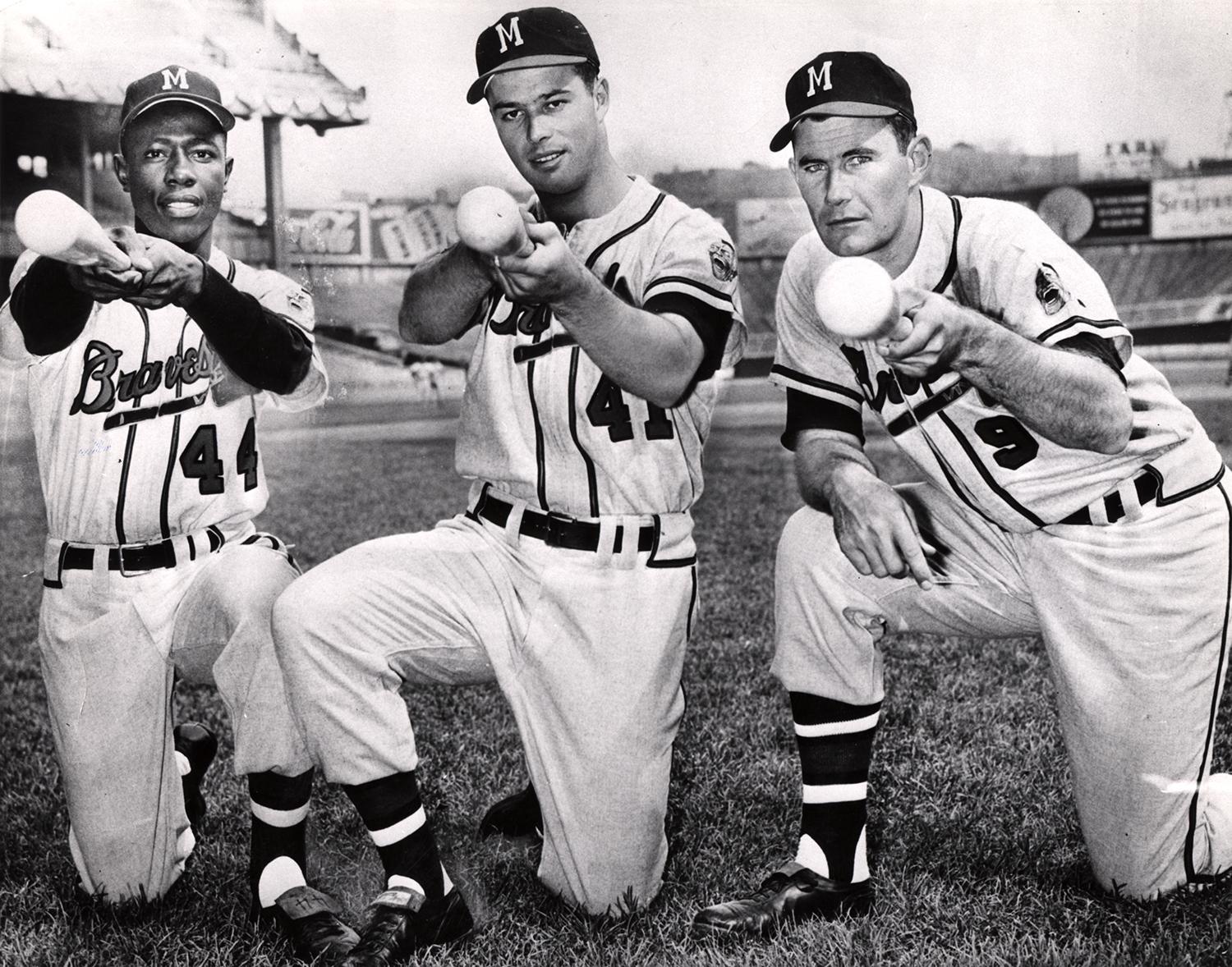 The Braves spent 13 seasons in Milwaukee, winning pennants in 1957 and ’58, and a World Series championship in 1957.The team’s second season in Milwaukee saw the debut of a promising young player named Hank Aaron. “Hammerin’ Hank” slugged 398 of his 755 career home runs in Milwaukee, and he earned his lone MVP award in 1957, leading both leagues with 44 homers and 132 RBIs.