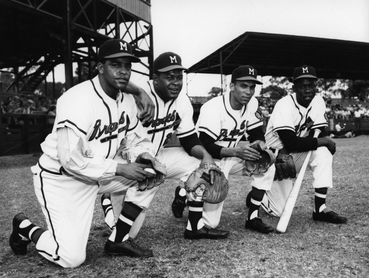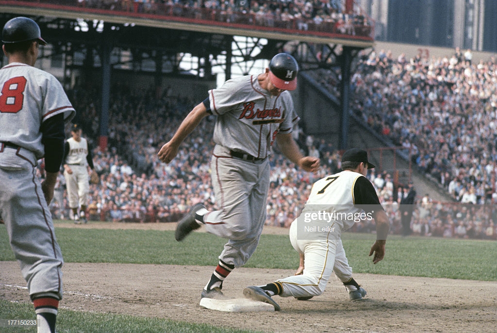 In the featured photo above, we see the great Hall-of-Famer, Hank Aaron with the Milwaukee Braves in the 1957 World Series.