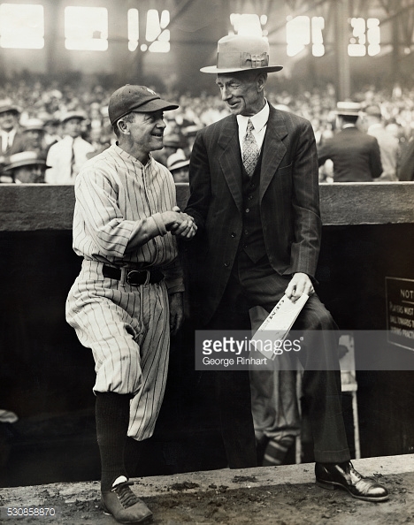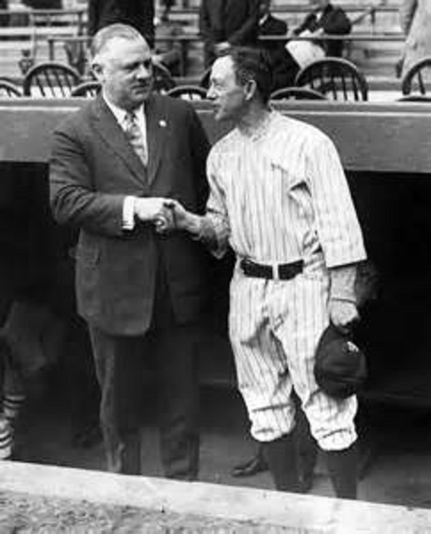 “Hug,'” as he was affectionately called by friends and many of his his players, learned much of his managing strategy at the hands of Hall-of-Fame manger Ned Hanlon and later, Roger Bresnahan. He at first emphasized “small ball” and baseball fundamentals, characteristic of the Dead Ball Era. Of course, that all changed on a day in 1920 when a highly touted young player named Babe Ruth showed up in his Yankee clubhouse.