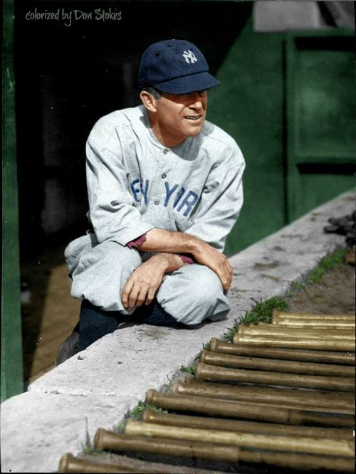 In the featured photo below, we see a beautiful colorization of Miller Huggins by our resident baseball artist, Don Stokes.
