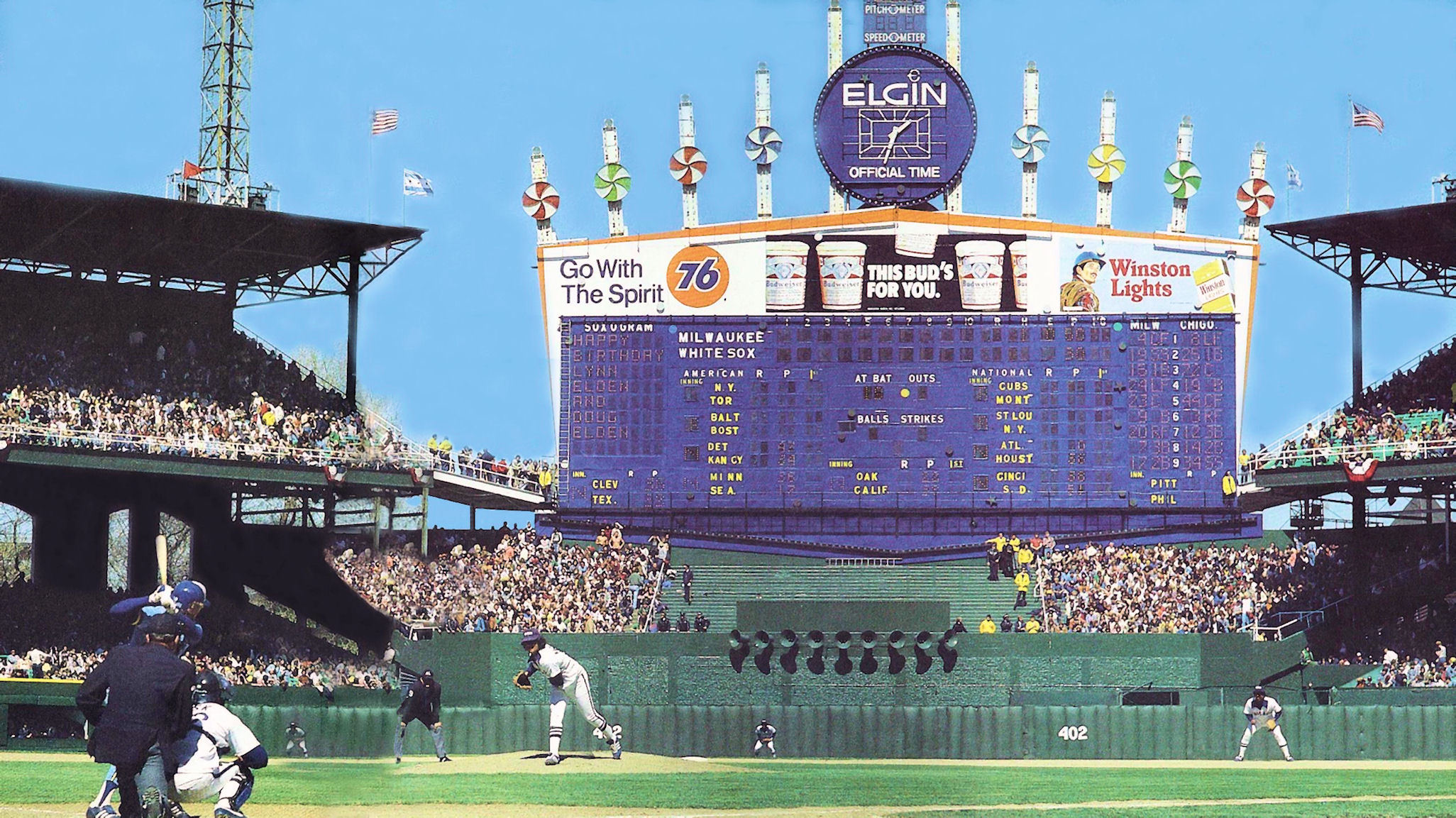 One of the board’s biggest fans is current owner Jerry Reinsdorf: “I was awed when Veeck unveiled his explosive innovation. The revolutionary board seemed unbelievable — yet typically Veeck. It set the pattern for the sophisticated scoreboards of today.”