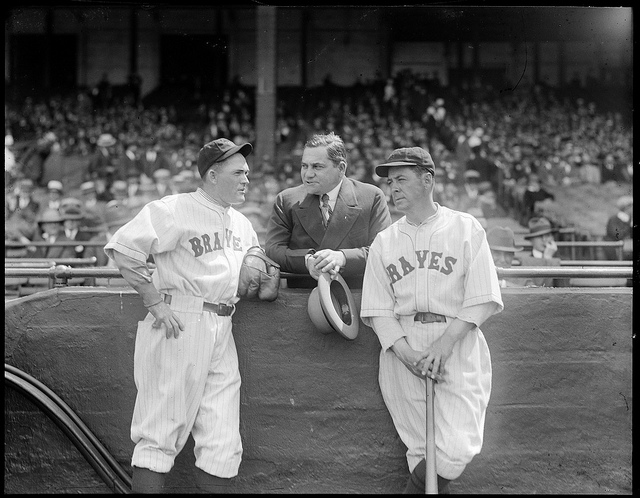 The previous year, 1927, Hornsby was traded from the Cardinals to the Giants in a trade of superstars that rocked the baseball world. John McGraw had long coveted Hornsby, and was willing to pay a steep price: star second baseman Frankie Frisch, plus journeyman pitcher Jimmy Ring. It was a trade McGraw soon came to regret. Hornsby lasted only one year in New York, while Frisch led the Cardinals to four pennants and two World Series championships over the next eight seasons. By the end of the 1927 season, Giants’ owner Charles Stoneham was fed up with Hornsby’s abrasive style, contract demands, and gambling habits – character flaws that stayed with him for his entire career – and unloaded him to the Boston Braves.