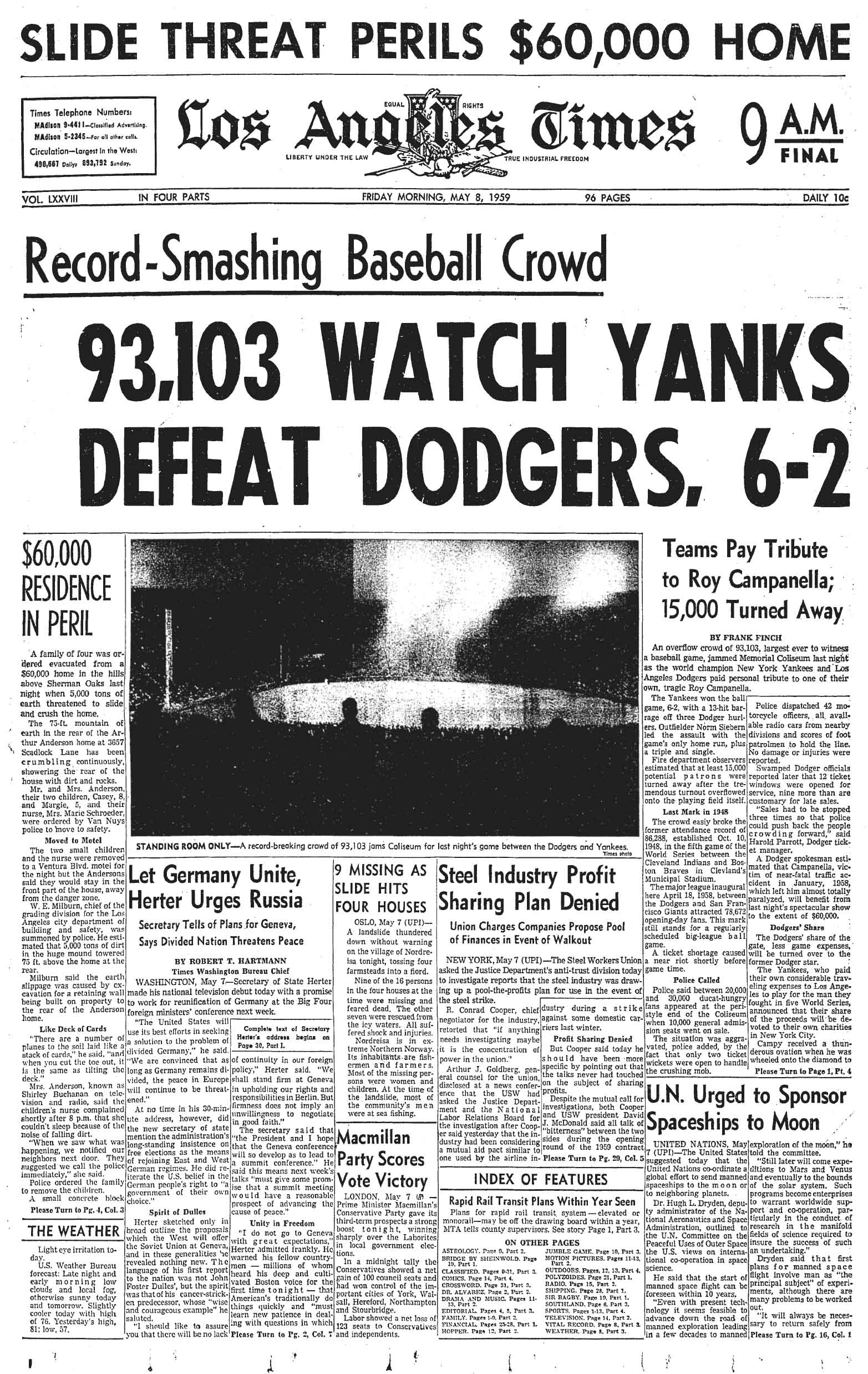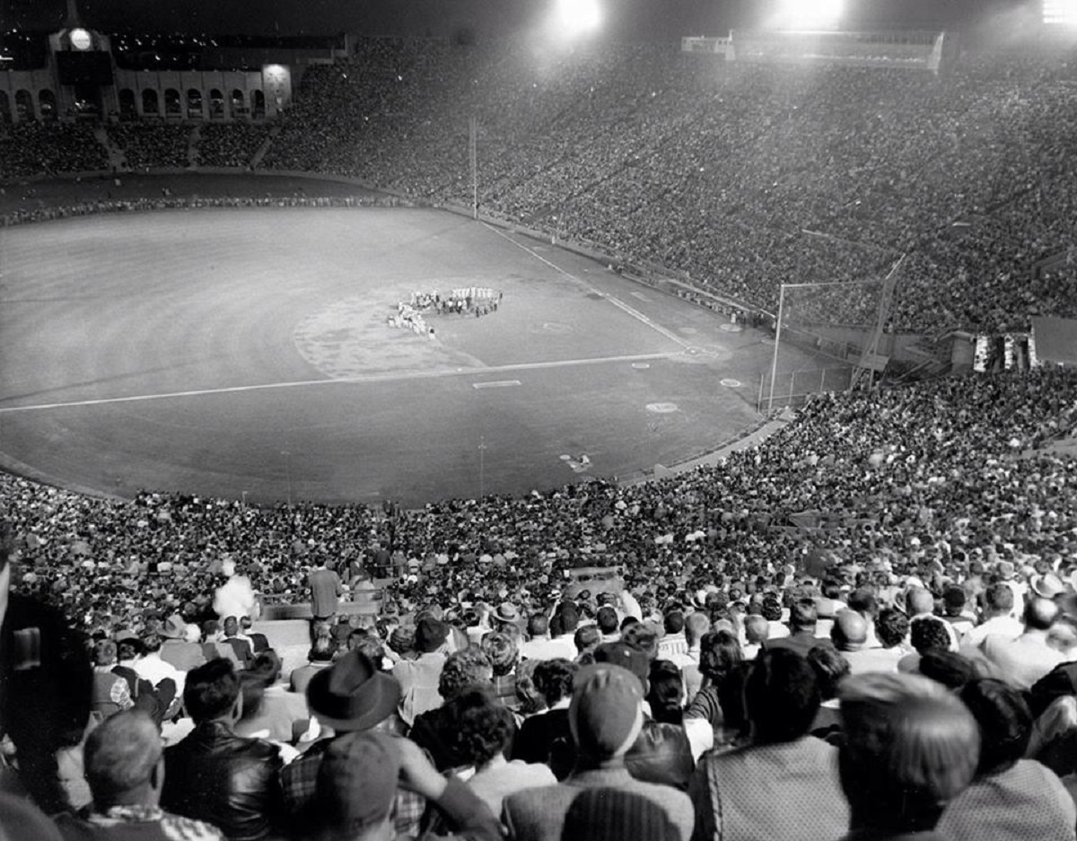 The 93,103 fans in attendance (with an estimated 15,000 turned away) stood as baseball’s record for many years. It even outgrew the Dodgers’ 1959 World Series home games (3, 4 and 5) which drew more than 92,000 fans for each game, but never reached the level of “Roy Campanella” night.