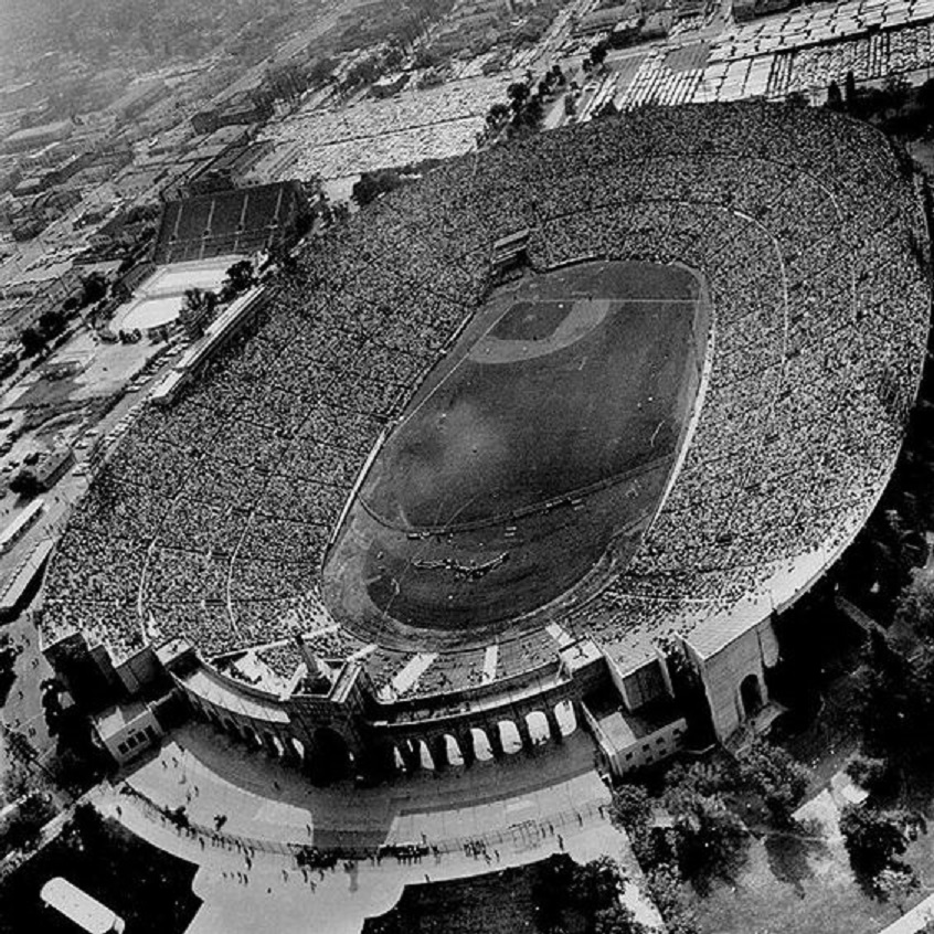 Scully: “A sea of lights in the Coliseum..perhaps the most moving and dramatic moment in the history of the sport.” Campy noted that the “93” in the 93,103 paid attendance was the same as his uniform number, backwards.