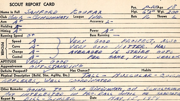 “There are two times in my life the hair on my arms has stood up. The first time was when I saw the ceiling of the Sistine Chapel. The second time, I saw Sandy Koufax throw a fastball. -Dodger scout Al Campanis