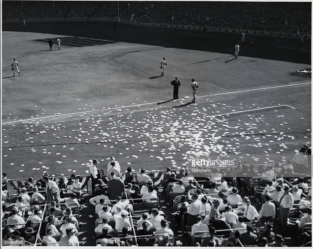 - New York Times sportswriter Red Smith wrote of series MVP Lew Burdette and his reputation for throwing a “wet one”: “There should be three pitching statistics for Burdette – Wins, Losses, and Relative Humidity.”