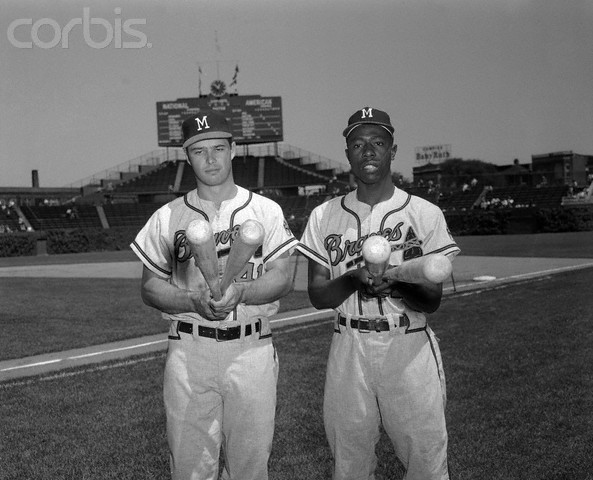 The Braves (95-59), were a well-balanced team, winning their first pennant since moving to Milwaukee in 1953. In addition to Aaron, their lineup included Eddie Mathews at .292-32-94 for the 1957 season; and Wes Covington who belted 21 dingers in just 96 games. They were strong defensively with Del Crandall behind the plate; and shortstop Johnny Logan and second baseman Red Schoendienst up the middle. After a mid-season injury to regular centerfielder Billy Bruton, Bob Hazle hit an amazing .403 in 41 games. Their pitching staff included the great Warren Spahn with his eighth 20-game win season; plus starters Lew Burdette and Bob Buhl (the three starters combining for 56 wins); and reliever Don McMahon.