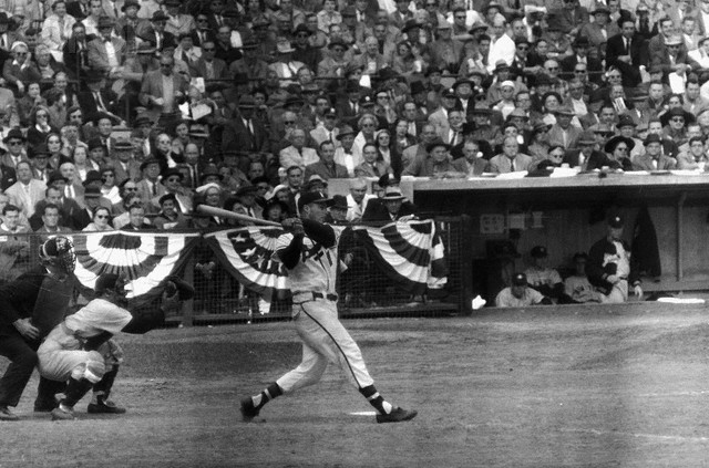 The Braves won the series four-games-to-three, behind series MVP Lou Burdette’s three complete game victories (amid ongoing suspicions he was throwing a doctored ball). The hitting star of the series was, no surprise, Hank Aaron, who posted a .393 average with three home runs and seven RBIs. Hank was coming off an MVP 1957 season, hitting .322 with 44 home runs and 132 RBIs.