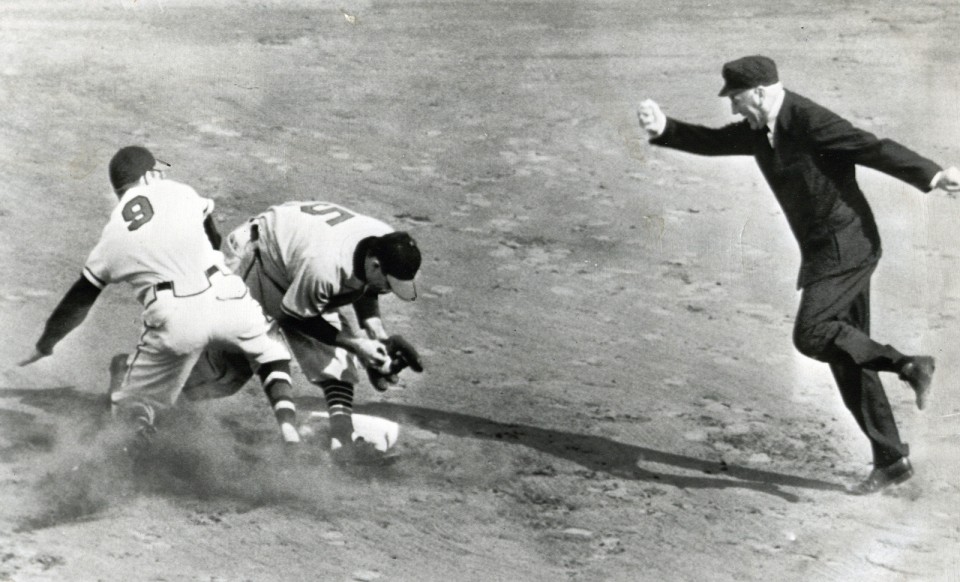 Boudreau helped make history in 1941 as a key figure in stopping Joe DiMaggio’s 56-game hitting streak. After two earlier brilliant defensive plays by Ken Keltner at third, Boudreau made a sensational barehanded snag of DiMaggio’s bad-hop grounder to start a double play and retire DiMaggio. The streak was over! Boudreau is also credited with inventing the infield shift – later known as “the Boudreau shift” – to counter the offensive prowess of the dead-pull hitting superstar, Ted Williams.