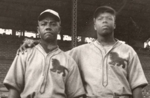 In the great action photo above, we see Ted “Double Duty” Radcliffe applying the tag to another great ballplayer, Josh Gibson in a game at Comiskey Park.