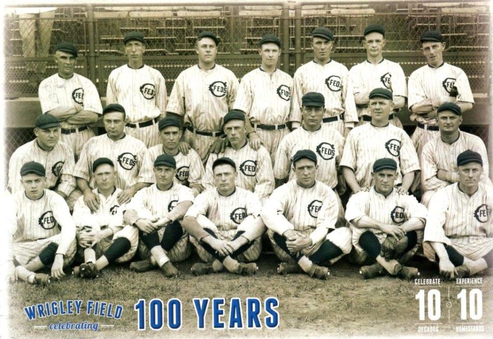 In April, 2014, the Cubs celebrated the 100th anniversary of Wrigley Field, which was originally known as Weegham Park. It was built in 1914 as the home for the Chi-Feds, the Chicago entry into the ill-fated Federal League. To commemorate this 100th anniversary, the Cubs printed a beautiful photo of the 1914 Chi-Feds (also known as the Chicago Whales) on the cover of the souvenir program.