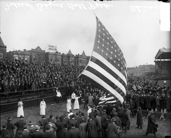 The Chi-Feds finished second in 1914 and then won the Federal League pennant in 1915. After this season, the Federal League disbanded and the Whales merged with the Cubs, who then moved from their wood-structured West Side Park into the more modern steel and concrete stadium known as Weegham Park. The Cubs played their first home game at the park on April 20, 1916, defeating the Cincinnati Reds 7–6 in 11 innings. It was named renamed Cubs Park from 1920 to 1926, and then Wrigley Field in 1927.