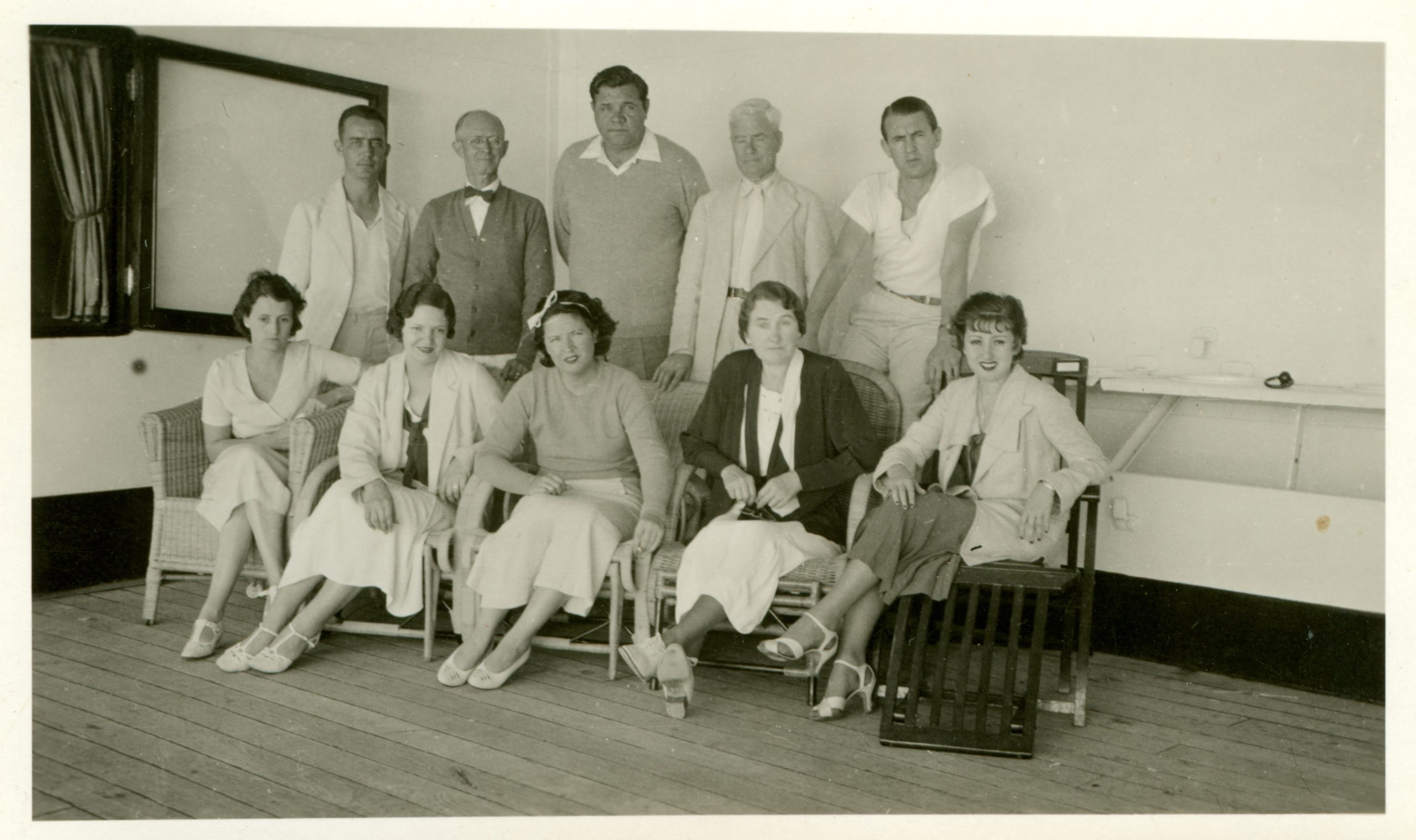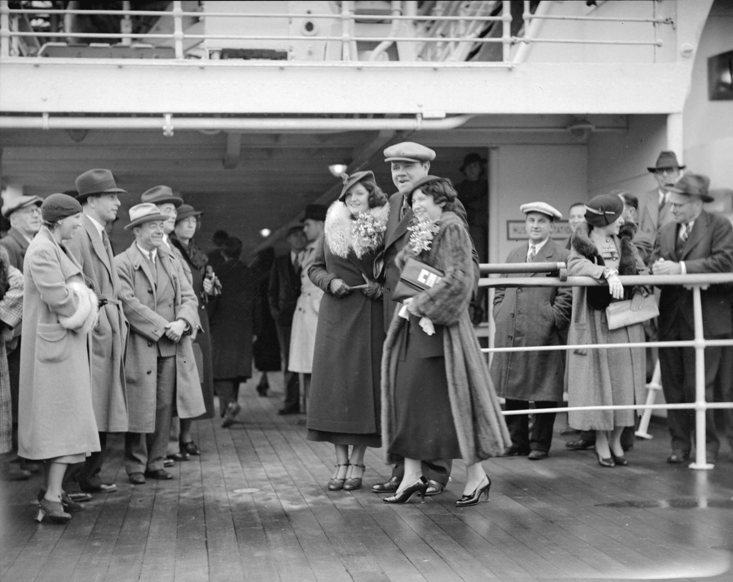 Part of the American entourage with their wives: Eric McNair, Doc Ebling, Babe Ruth, Bud Hellerich, Lefty Gomez.