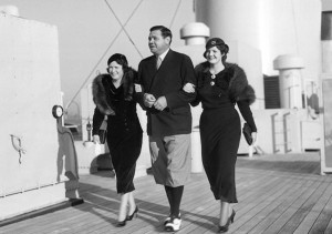 The Babe with wife Claire and daughter Julia aboard the ocean liner, the Empress of Japan